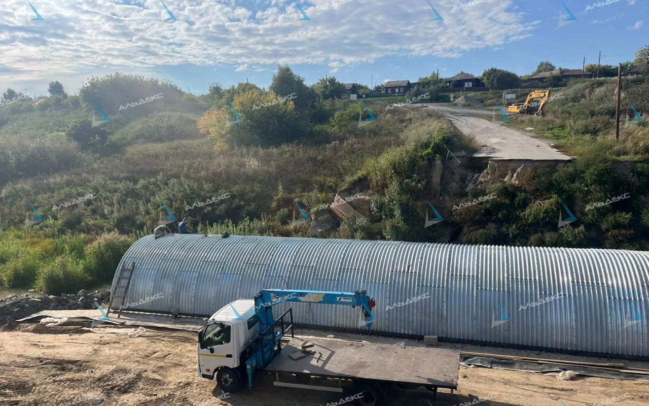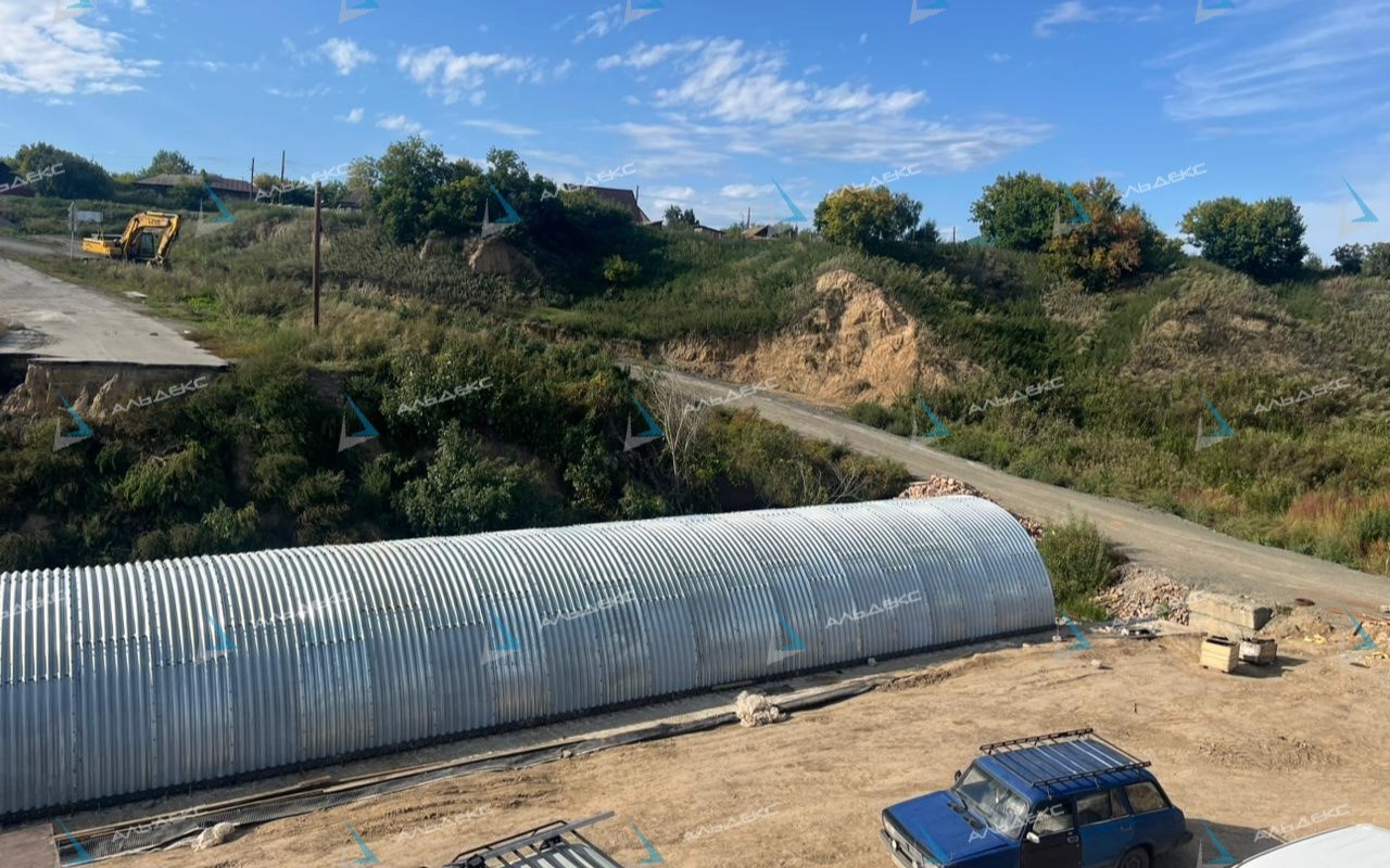 Такой пример демонстрирует эффективность применения арки из гофрированных листов ЛМГ как надежного и долговечного элемента дорожно-транспортной инфраструктуры.