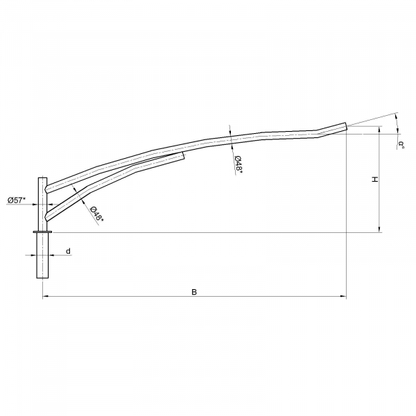 Однорожковые кронштейны К11-0,7-1,5-0-1 предназначен для крепления светильника на трубчатой опоре освещения. Завод опор освещения «Альдекс» изготавливает однорожковые консольные кронштейны из стального проката. Собственное производство позволяет выполнять изделия надлежащего качества и в кратчайшие сроки. Конструкция однорожковых кронштейнов К11-0,7-1,5-0-1. Конструкция консольных однорожковых кронштейнов К11-0,7-1,5-0-1 представляет собой гнутую металлическую трубу заданных размеров.