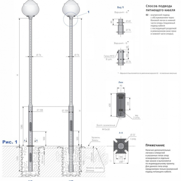 Опоры НФ предназначены для освещения скверов, парков, набережных, коттеджных посёлков. Используются для установки торшерных светильников и декоративных кронштейнов.