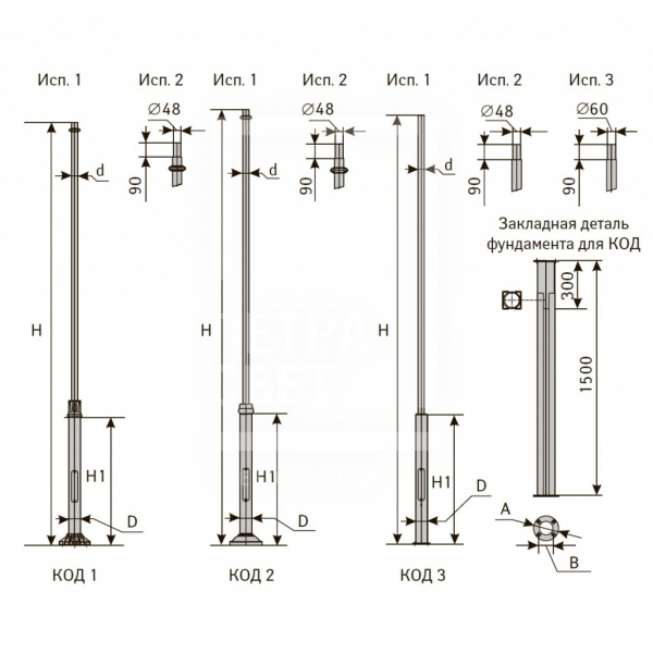 Опоры изготавливаются из трубного проката. В нижней части опоры имеется закрытый отсек (лючок) для установки автоматических выключателей и клеммных блоков. В опорах КОД-2 возможно установка декоративных чугунных элементов.