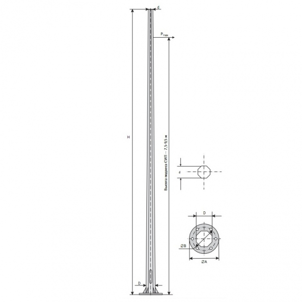 • 0,7 — вертикальная нагрузка в верхней точке опоры в тоннах (0,4т=400кг);