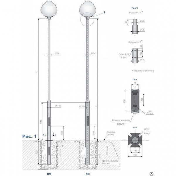 Способ установки опор НП — прямостоечный, закрепляется при помощи бетона.