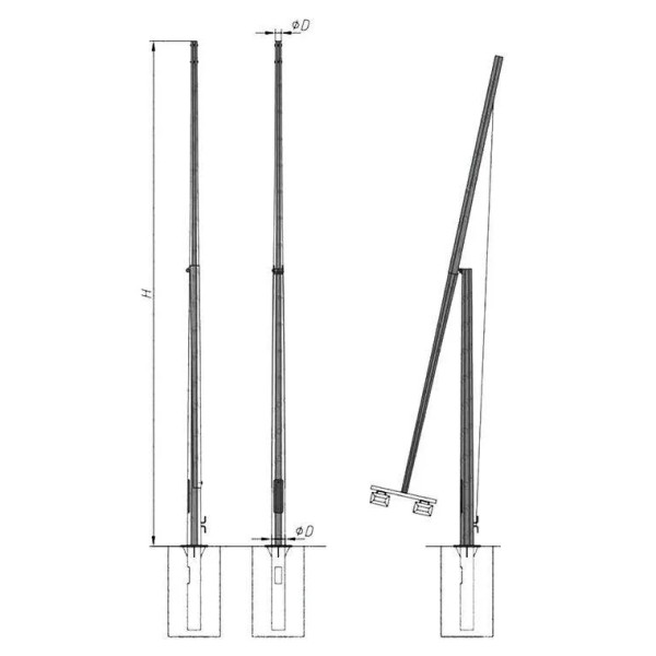 Выпускаются высотой от 6 до 20 метров. Питающий электрический кабель прокладывают под землей, а обслуживание столба освещения осуществляется через люк, расположенный в нижней части изделия (или в фундаменте). Способ установки — фланцевый. Складывание фонарного столба происходит за счет шарнирного механизма и балансира, уравновешивающего вес верхней части конструкции вместе с осветительными приборами и кронштейнами. Обычно балансир весит больше на 2 кг. Кронштейн к опоре крепится с помощью фланца, что делает соединение максимально надежным, исключающим выпадение кронштейна при складывании конструкции, и способным выдерживать сильные порывы ветра и вибрации.